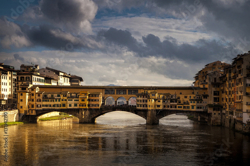 © Andrew S., Obraz premium Spanning the Arno River, Florence, Italy's iconic Ponte Vecchio bridge