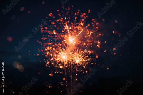 Fototapeta premium Sparklers and fireworks glowing against a deep blue backdrop with bokeh effects