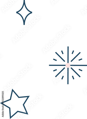 Fototapeta premium Sparkles and stars are floating in flat design on transparent background with blue lines, pink dot