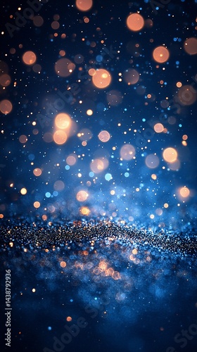 © Enggal Pitoyo, Obraz premium Sparkling blue glitter, festive bokeh background, night celebration