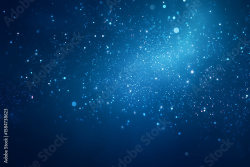 Fototapeta premium Sparkling blue particles drift across dark background