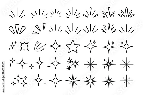 © MVectors, Naklejka premium Sparkling Burst Set Vector Collection of Shine Effect Elements and Star Shapes