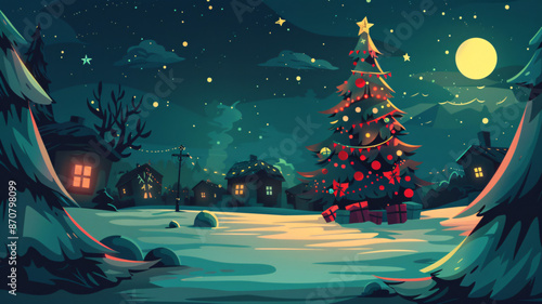 © ggamyuii, Obraz premium Sparkling Christmas Eve: Vector Art Illustration