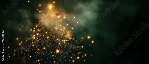 Naklejka premium Sparkling Christmas Tree Lights Festive Holiday Background Gold Glitter Design