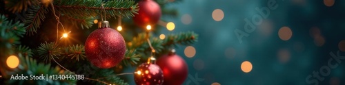 © Kachaphot, Obraz premium Sparkling Christmas tree with delicate ornaments and twinkling lights, baubles, christmas