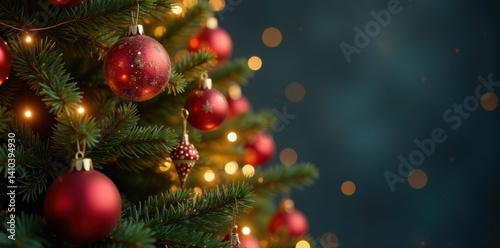 Fototapeta premium Sparkling Christmas tree with glittering ornaments and soft twinkling lights,...