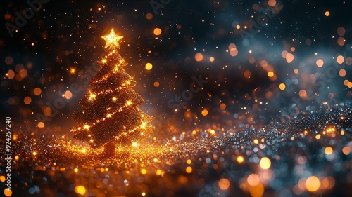 Naklejka premium Sparkling Christmas Tree with Golden Lights
