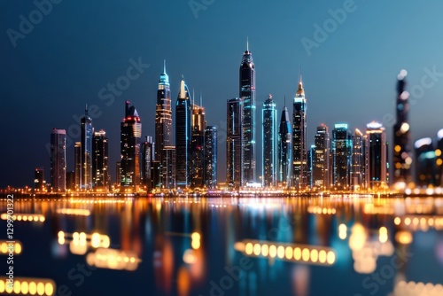 © Tam5, Obraz premium Sparkling Cityscape at Night Captivating Modern Architecture and Glowing Lights Reflecting on Water