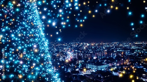 Naklejka premium Sparkling Cityscape Christmas Tree Lights Night View