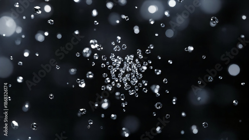 © abufahim, Fototapeta premium Sparkling clear diamonds or crystals falling on black background