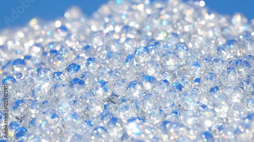 Fototapeta premium Sparkling clear round beads with iridescent sheen in bright sunlight