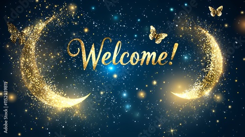 Naklejka premium Sparkling Crescent Moons Welcome Banner: A Celestial Invitation