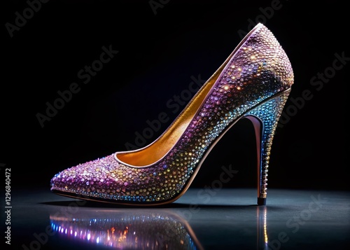 © Four888, Obraz premium Sparkling Crystal High Heel Shoe on Black Velvet - Low Light Photography
