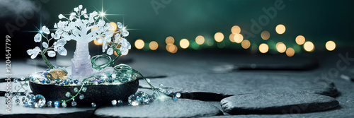 Fototapeta premium Sparkling Crystal Tree Zen Decor Spiritual Glowing Lights Mystical Handmade Crafts Relaxation Peace
