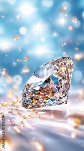 Fototapeta premium Sparkling Diamond on Soft Fabric with Glowing Background.