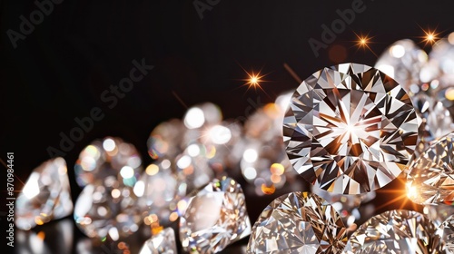 © Matthew, Fototapeta premium Sparkling diamonds on a black background with bright highlights.