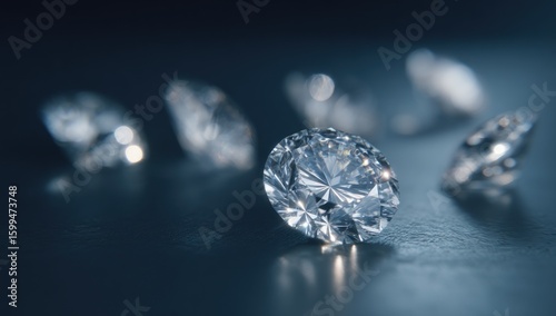 © Alfath, Fototapeta premium Sparkling diamonds on a dark surface.