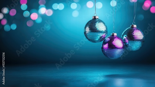 Fototapeta premium Sparkling disco balls against a vibrant bokeh background