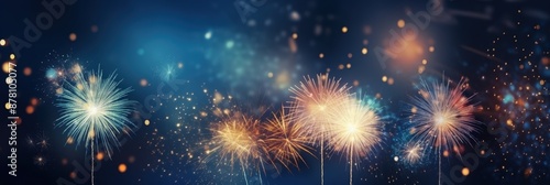 Naklejka premium Sparkling Fireworks Celebration,Happy New Year, Beautiful creative holiday background with fireworks and Sparkling