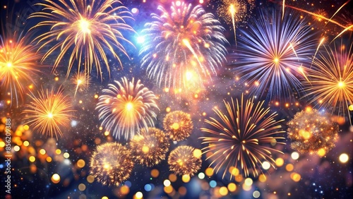 © BERMED, Naklejka premium Sparkling Fireworks Display in Night Sky for Celebration Events