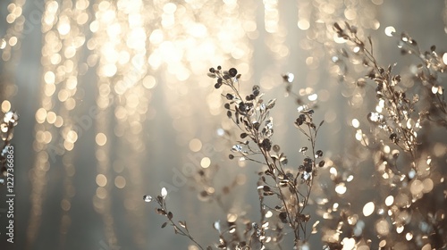 © Faizal, Fototapeta premium Sparkling foliage with golden bokeh background creates a magical and dreamy atmosphere