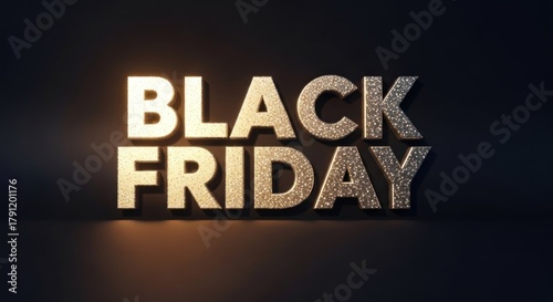 © mlangsen, Obraz premium Sparkling gold 'BLACK FRIDAY' text with warm glow on a dark background
