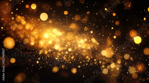 © CLOVER BACKGROUND, Obraz premium Sparkling Gold Particles on Dark Background