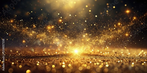 © chokdeelaw, Obraz premium Sparkling golden dust settles on a dark surface