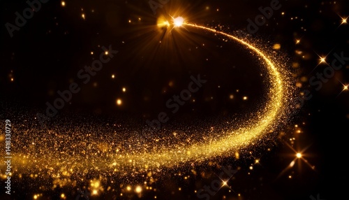 Naklejka premium Sparkling Golden Particles Trail - Stars - Glittering particle effect...