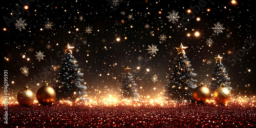 Naklejka premium Sparkling Holiday Trees with Golden Ornaments and Snow