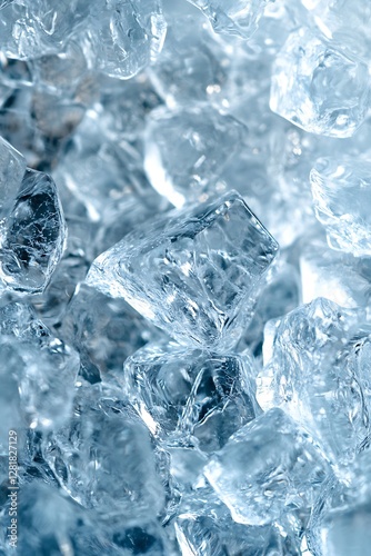 © Buduk, Obraz premium Sparkling ice cubes, close-up texture