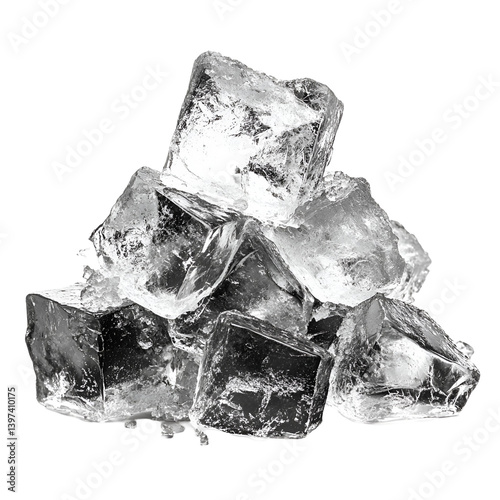 © MdAtiqur, Obraz premium Sparkling Ice Cubes Pile Black Background