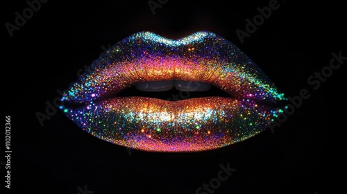 © KYR, Naklejka premium Sparkling lips covered in vibrant glitter, reflecting captivating light and exuding glamor for a chic and stylish beauty vibe.