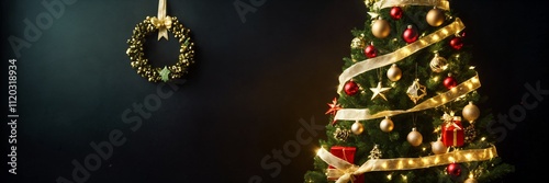 Fototapeta premium Sparkling Merry Christmas and Happy New Year Banner – Elegant Holiday Design with Wintery Elements and Festive Cheer