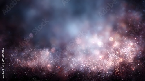 Fototapeta premium Sparkling New Year fireworks and blurred bokeh lights around glowing center