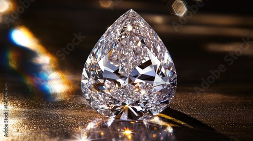 © Andi, Fototapeta premium Sparkling pear-shaped precious stone on a dark surface.