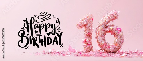 Naklejka premium Sparkling Pink Sixteen: Happy 16th Birthday Glitter Celebration
