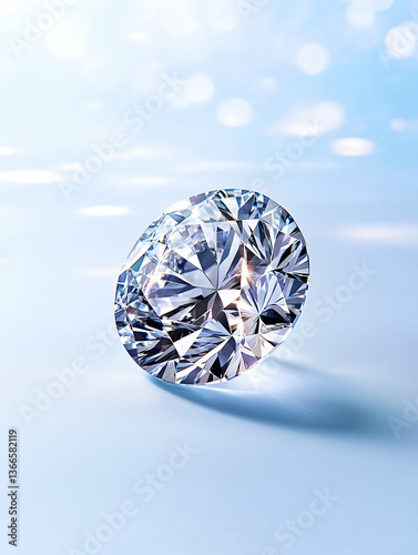 Fototapeta premium Sparkling round brilliant-cut diamond on a light blue background (1)