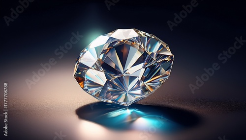 Fototapeta premium sparkling round brilliant cut diamond on dark surface
