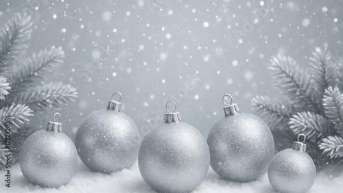 Fototapeta premium Sparkling silver Christmas ornaments displayed.