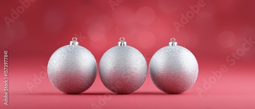 © Hospital man, Fototapeta premium Sparkling silver christmas ornaments on red background holiday decoration still life photography festive atmosphere close-up view seasonal spirit