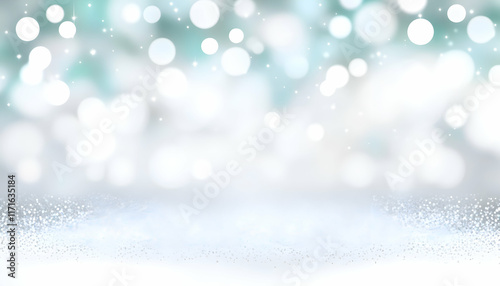 Fototapeta premium Sparkling silver glitter background with soft bokeh lights; ideal for festive...
