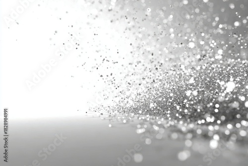 © Mozammel, Fototapeta premium Sparkling silver glitter particles scattered across a reflective surface with bright white light