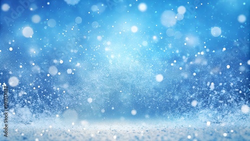 Fototapeta premium Sparkling Snowfall on a Frosty Blue Winter Background with Soft Light