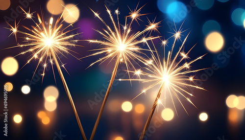 Naklejka premium Sparkling sparklers and bokeh lights in the background.,holiday celebration...