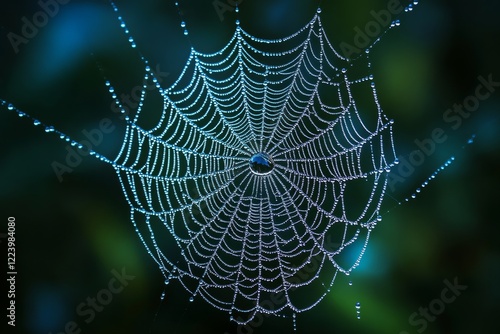 Naklejka premium Sparkling Spiderweb: A Close-Up Glimpse of Dew-Covered Nature's Intricate...