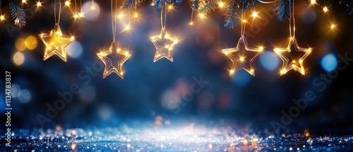 © Fernando, Obraz premium Sparkling Star Lights Festive Holiday Background with Glimmering Glitter