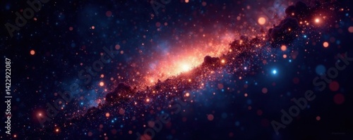 Fototapeta premium Sparkling starfield on a velvety black canvas, star clusters, nebula, cosmic scene