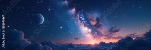 Fototapeta premium Sparkling starry sky with planets and constellations, cosmic, astronomical