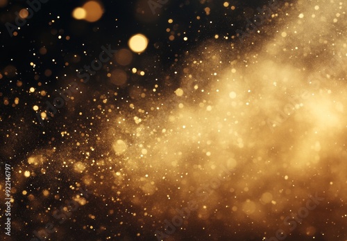 © Zaleman, Naklejka premium Sparkling tail shimmers light magic confetti Golden shiny black comet wave. Glittering trail Golden glitter background glistering shine wave'